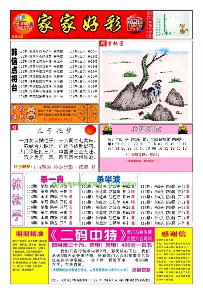 | 110期:六肖中特【兔牛龙马狗羊】开:狗20准 | |||